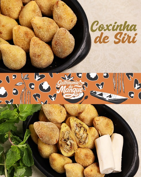 Você vai encontrar a Gastronomia do Mangue pronta para o consumo embalada a vácuo em caixas com 500g, contendo tabela nutricional, código de Barra, data de validade, referencias de qualidade e procedência.